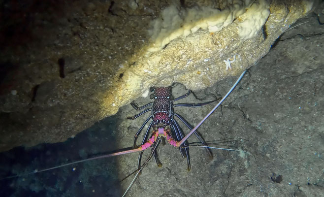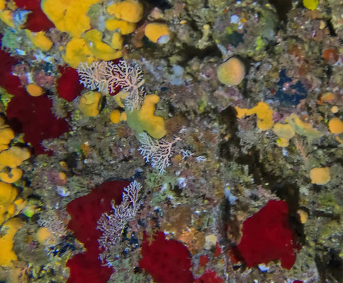 Korallen und Weihnachtsbaumwürmer beim Chinese Garden (Bild 1-2) | In der Sharktooth Höhle | bunt bewachsene Höhlenwände | Lobster