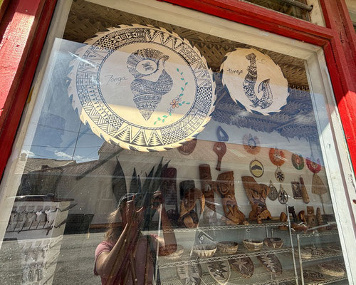 In Tongas Gewässern treffen sich um diese Jahreszeit Buckelwale zu Paarung und Geburt bevor sie im Sommer wieder in die nährstoffreiche Antarktis zurückkehren. Das Thema Wale ist hier allgegenwärtig, vielerorts werden Waltouren angepriesen, T-Shirts mit Walprints und Schmuckstücke mit Waldarstellungen werden angeboten. Die Idee, an einer Wal-Tour teilzunehmen, wird in unserer Tiny Fleet schon länger diskutiert. René und ich waren bisher skeptisch, weil wir uns ausmalen, dass die Wale sich von den Tourist:innen gestört fühlen. Schliesslich siegt aber doch die Neugier und wir buchen gemeinsam mit den anderen ein Boot.