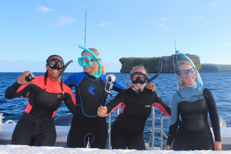 In Schnorchelausrüstung: Petunia, Laura, Ester und Illy (v.l.)